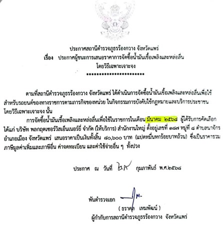 การจัดซื้อน้ำมันเชื้อเพลิงและหล่อลื่นเพื่อใช้ในราชการ ในเดือน มีนาคม ๒๕๖๘