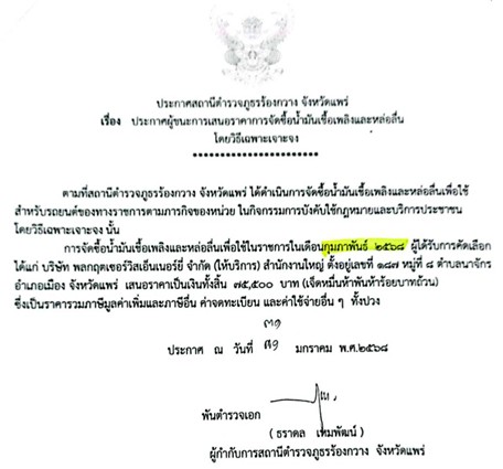 การจัดซื้อน้ำมันเชื้อเพลิงและหล่อลื่นเพื่อใช้ในราชการ ในเดือน กุมภาพันธ์ ๒๕๖๘