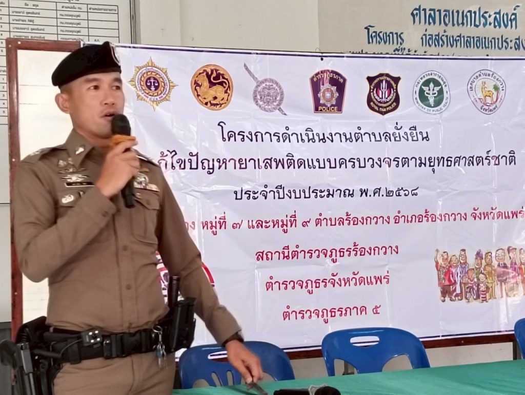 วันที่ 28 มี.ค.2568 เวลา 08.00 น. โดยการอำนวยการของ พ.ต.อ.ดวงยุธ ศรีสองสม รรท.ผกก.สภ.ร้องกวาง นำโดย พ.ต.ต.เสกสัน สีทิ สวป.สภ.ร้องกวาง, ร.ต.อ.ทรัพย์ อินถา รอง สวป.(ชส.) สภ.ร้องกวาง, ร.ต.อ.รัษฎากร เขื่อนเชียงสา รอง สวป.สภ.ร้องกวาง พร้อมชุดปฏิบัติการตำบลยั่งยืน และเจ้าหน้าที่สายตรวจ สภ.ร้องกวาง ร่วมกับ เจ้าหน้าที่สาธารณสุขอำเภอร้องกวาง, รพ.สต.ร้องกวาง, ผู้นำชุมชน และ อสม. บ้านร้องกวาง หมู่ที่ 9 ต.ร้องกวาง อ.ร้องกวาง ร่วมกันตรวจปัสสาวะประชาชน อายุตั้งแต่ 12 – 65 ปี x -ray 100% ภายในหมู่บ้าน บ้านร้องกวาง หมู่ที่ 9 ต.ร้องกวาง อ.ร้องกวาง จว.แพร่ จำนวนทั้งสิ้น 60 คน พบผู้เสพและสมัครใจเข้าร่วมโครงการ 1 ราย ระหว่างปฏิบัติหน้าที่ได้รับความร่วมมือจากผู้นำชุมชน และประชาชนเป็นอย่างดี
