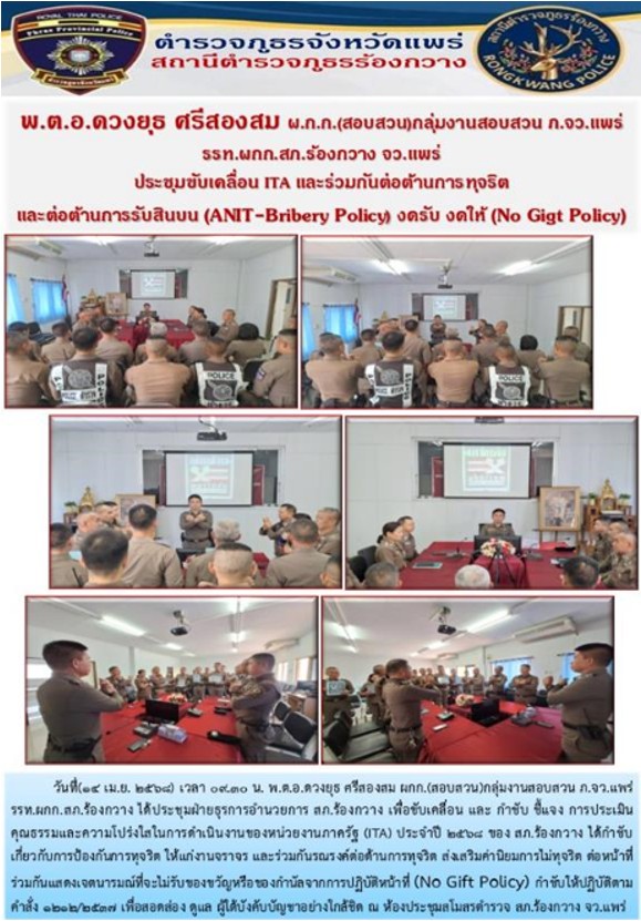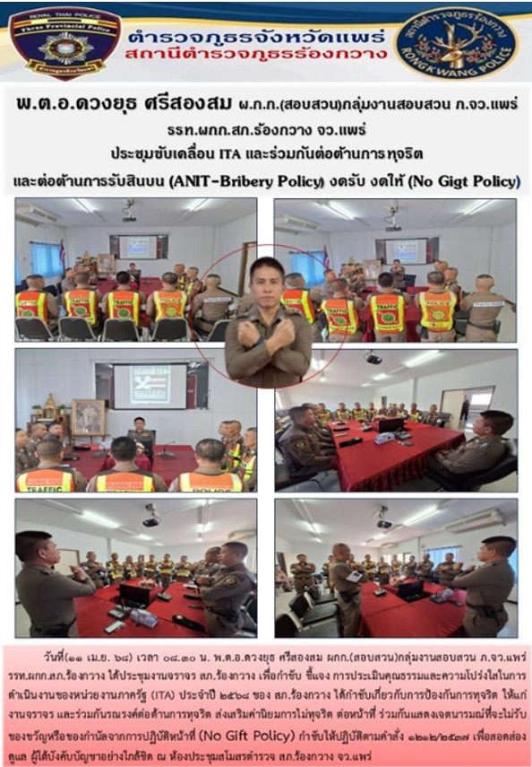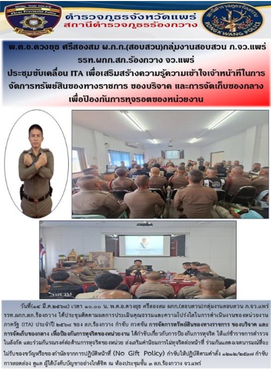 การเตรียมความพร้อมรับการประเมินคุณธรรมและความโปร่งใสในการดำเนินงานของหน่วยงานภาครัฐ ( Integrity & Transparency Assessment : ITA ) ของสถานีตำรวจภูธร ประจำปีงบประมาณ พ.ศ.2568