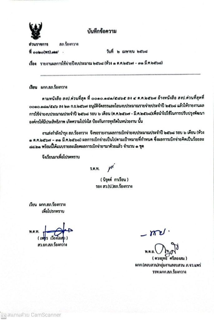 รายงานผลการใช้จ่ายงบประมาณ 2568
